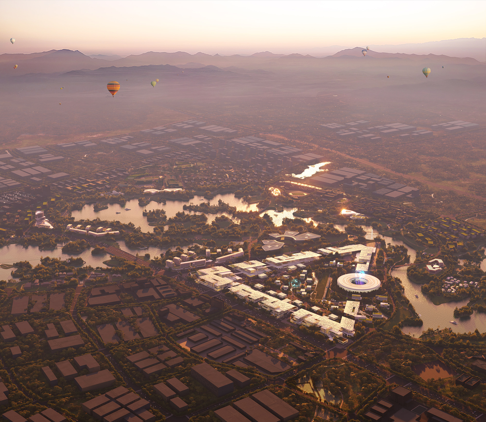 At the edge of Jinyi Lake, a new kind of innovation ecosystem is envisioned. Moving away from the traditional model of subdividing land into isolated plots, the Studio conceived a continuous and organic ‘landscraper’ – horizontal, expansive, engaging in a gentle dialogue with the surrounding lake and hills.